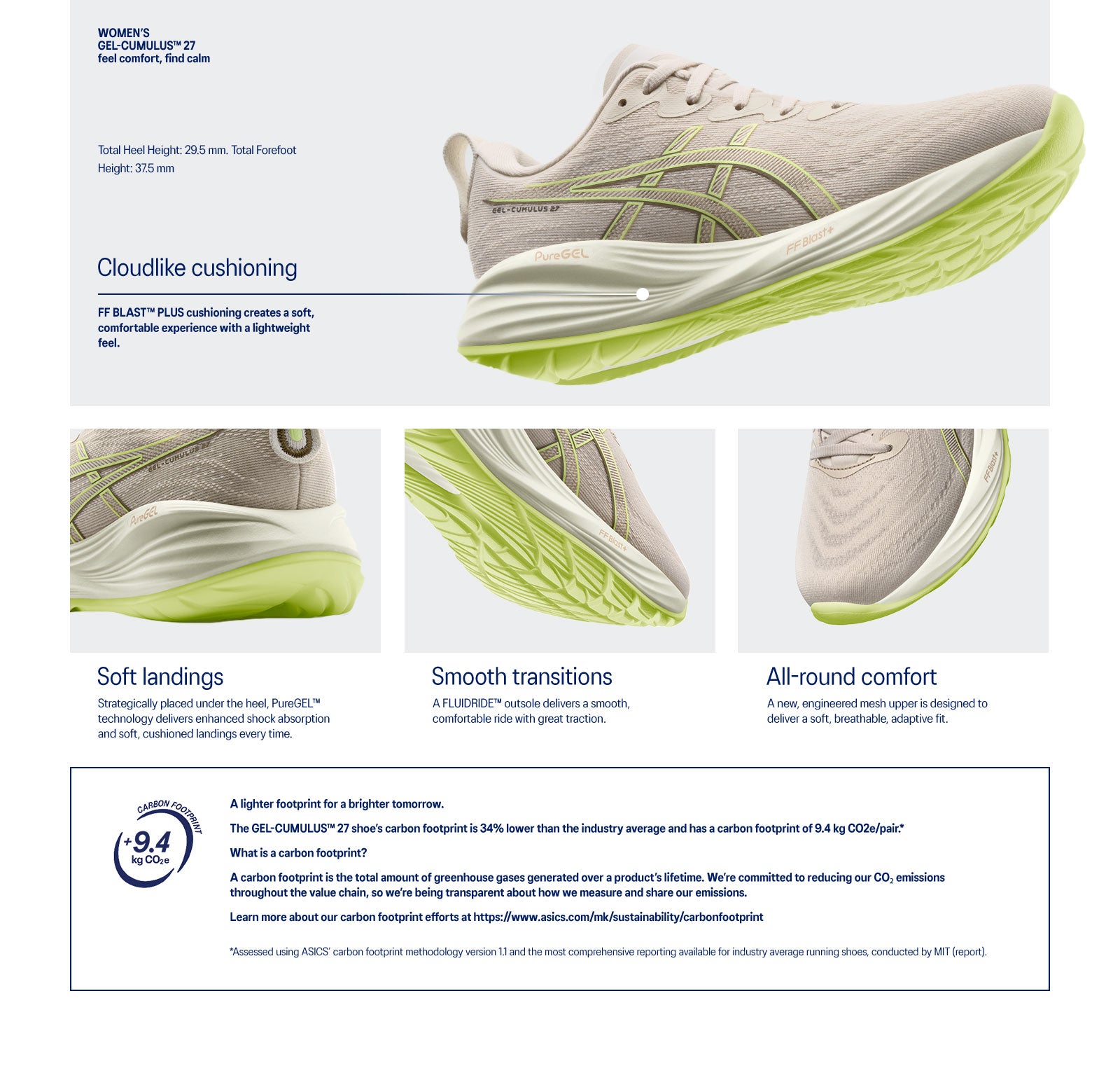 Experience a soft feel underfoot with the GEL-CUMULUS 27 shoe. This neutral everyday trainer is a versatile choice for various running workouts and distances